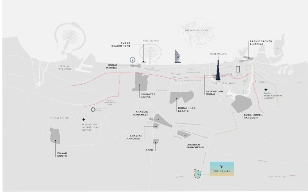 The Valley is a picturesque and dynamic community where contemporary neighbourhoods are woven into a tapestry of vibrant greenery. Located along Dubai-Al Ain Road, it strikes the perfect balance between serenity and accessibility—an escape from the city’s hustle yet still connected to all that Dubai has to offer.